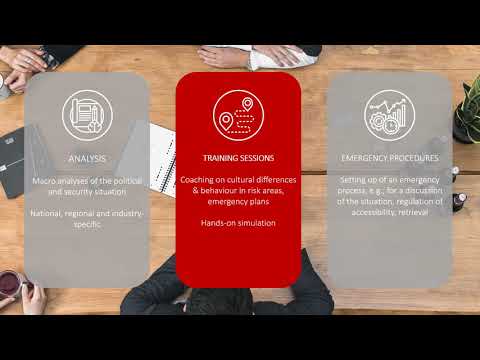 Within our approach we offer you an analysis of the political and security situation, travel security trainings and the creation of emergency processes.